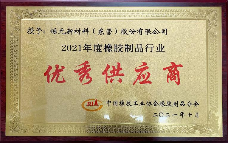 我司獲得“2021年度中(zhong)國橡膠制品行業(ye) 優秀供應商”榮譽(yù)稱号