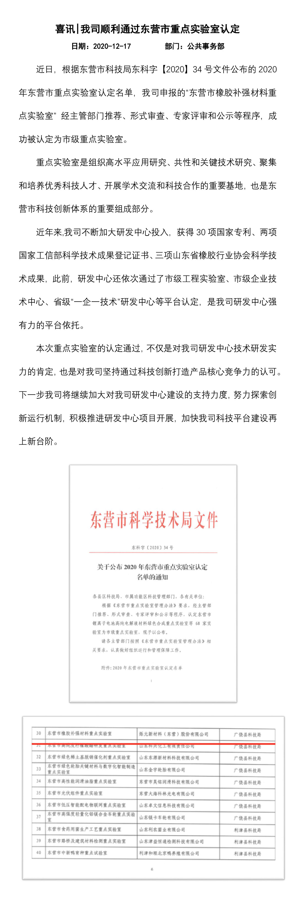 喜(xi)訊 |我司順利通過(guo)東營市重點實驗(yan)室認定