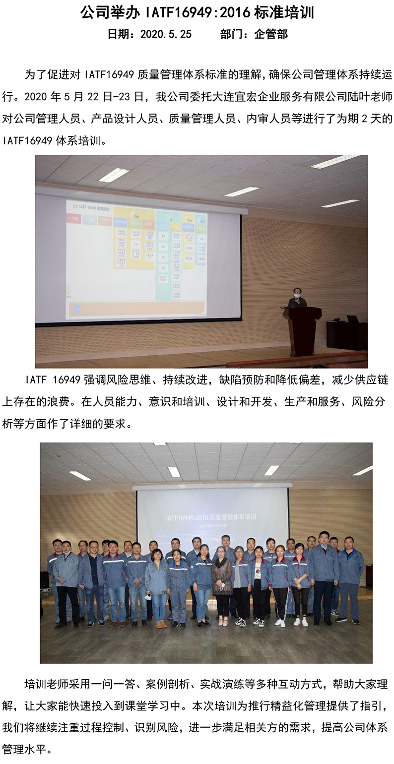 公司(si)舉辦IATF16949:2016标準培訓(xun)