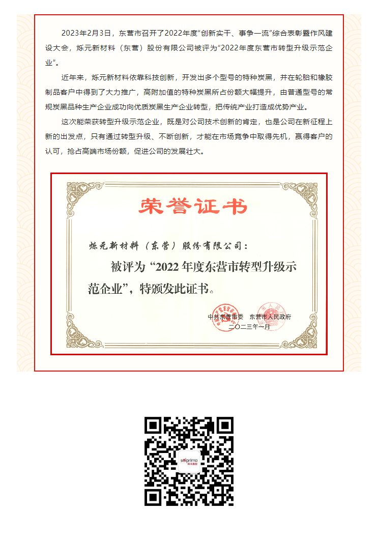 我(wǒ)公司獲“2022年度東營(yíng)市轉型升級示範(fan)企業”