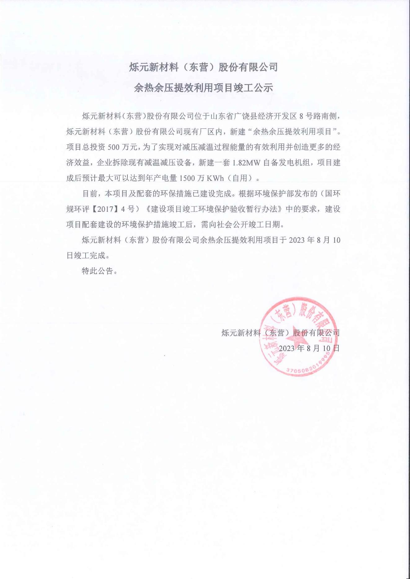 石(shi)家庄义浩机械制(zhì)造有限公司(H5网站(zhàn))餘熱餘壓提效利(li)用項目竣工公示(shi)