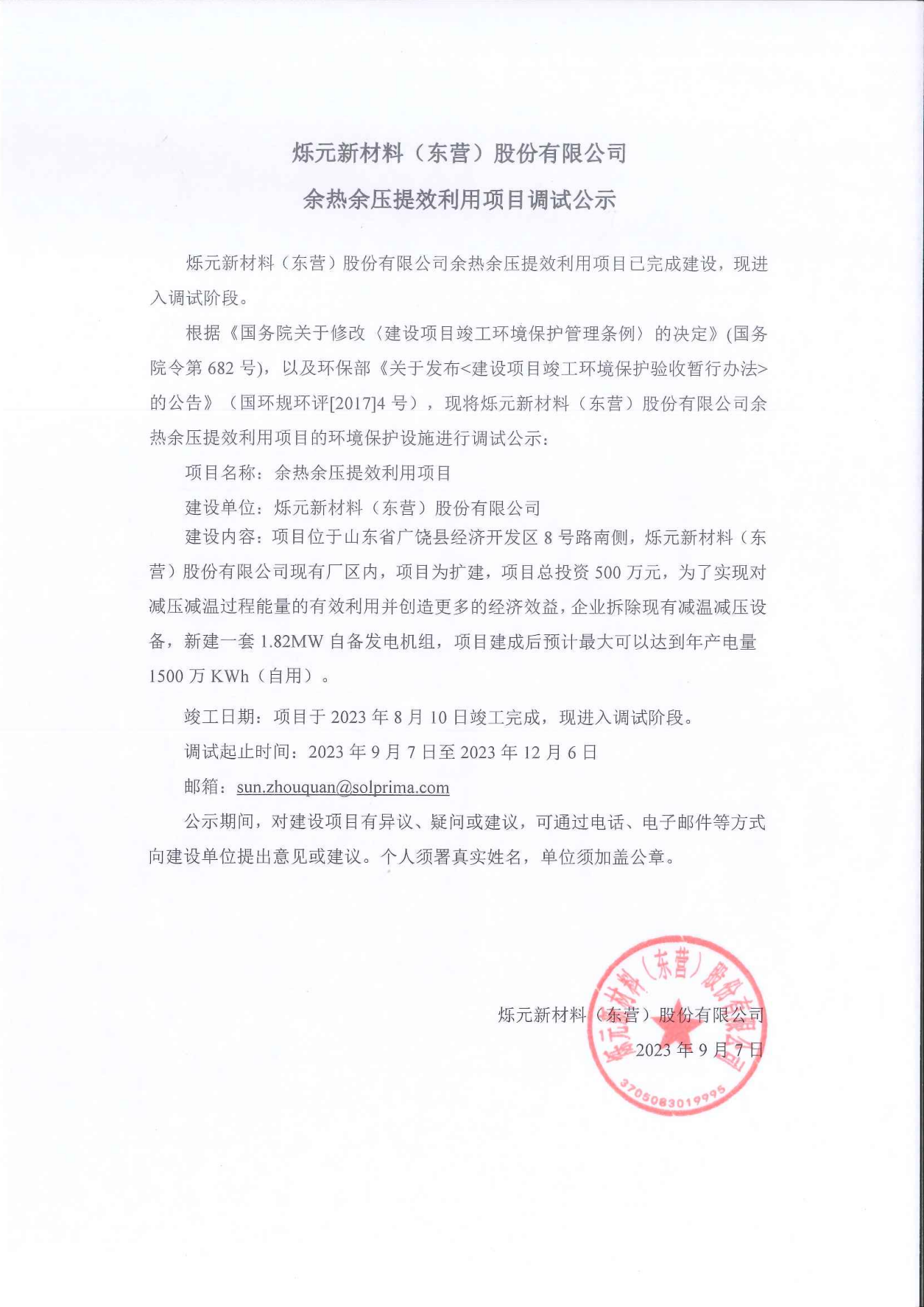 石家(jia)庄义浩(hào)机械制(zhì)造有限(xian)公司(H5网(wǎng)站)餘熱(rè)餘壓提(tí)效利用(yong)項目調(diào)試公示(shì)