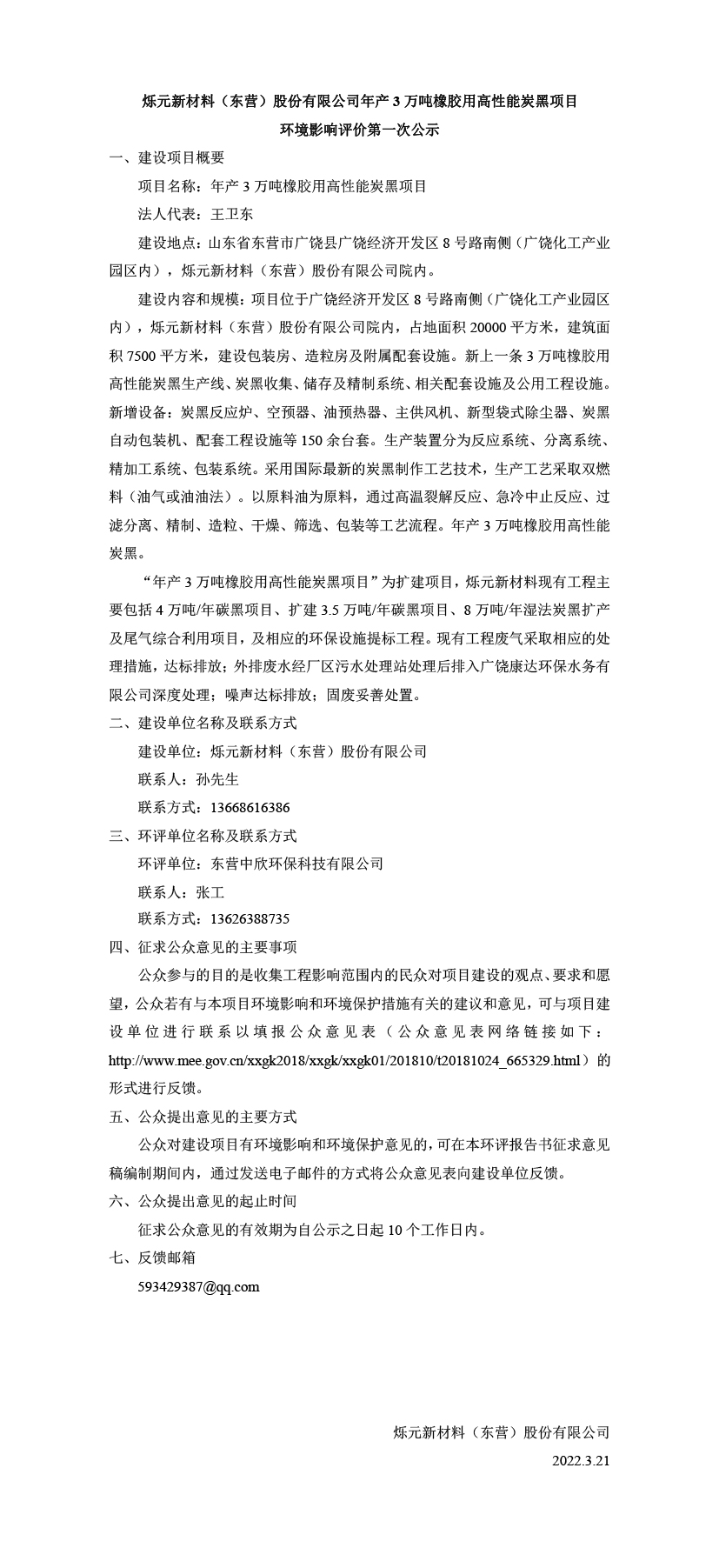 年(nian)産3萬噸橡膠用高(gāo)性能炭黑項目環(huán)境影響評價🍓第一(yi)次公示